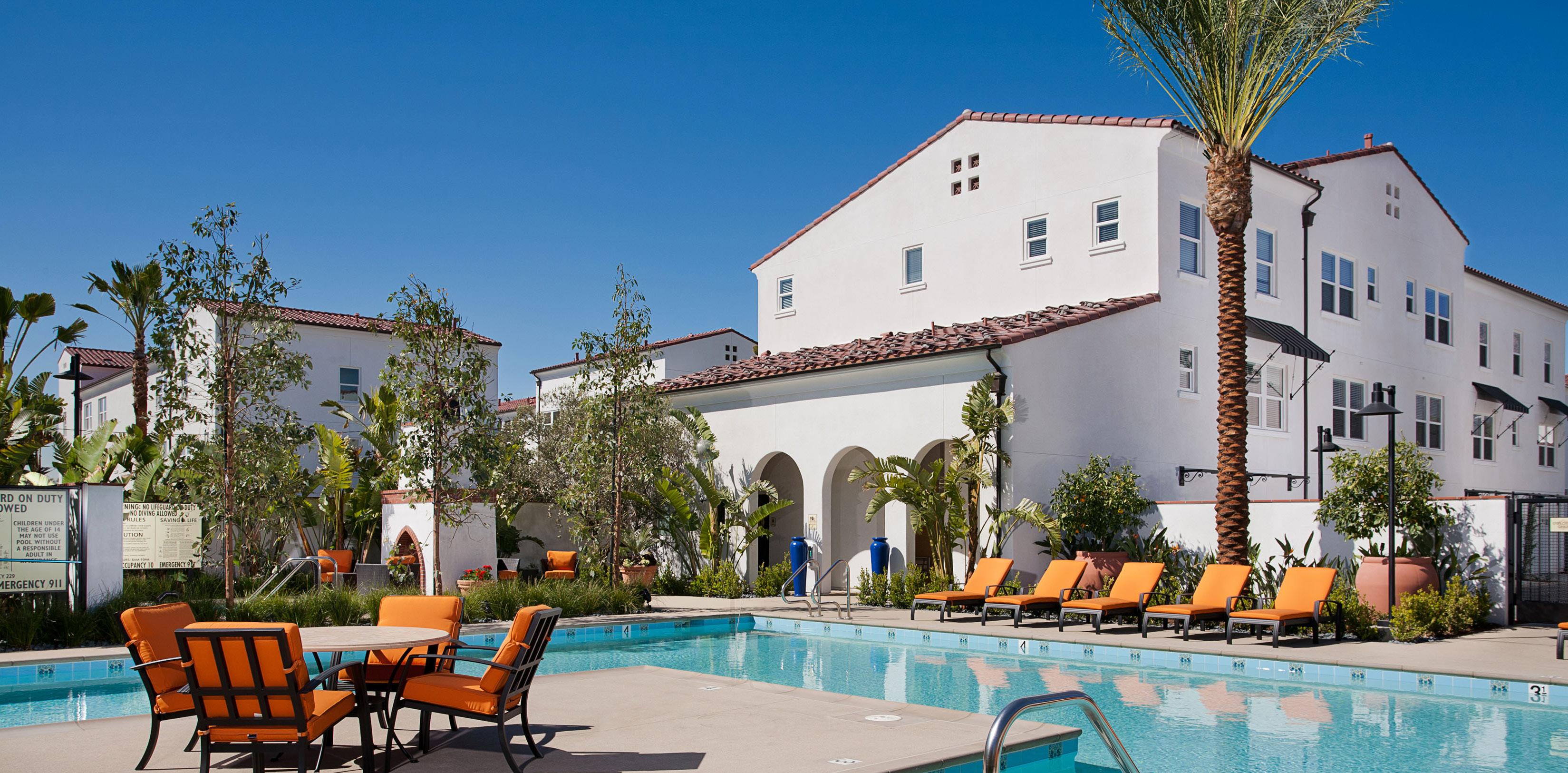 The vision for the project was to bring the essence and character of the hamlet of Santa Barbara to Rancho Cucamonga. A pedestrian friendly “State Street” anchored on one end by a park, and community gardens at the other, ties together the various residential courtyard buildings. Each courtyard is an intimate grouping of front entries with a unique landscape design palette for the residents to discover.