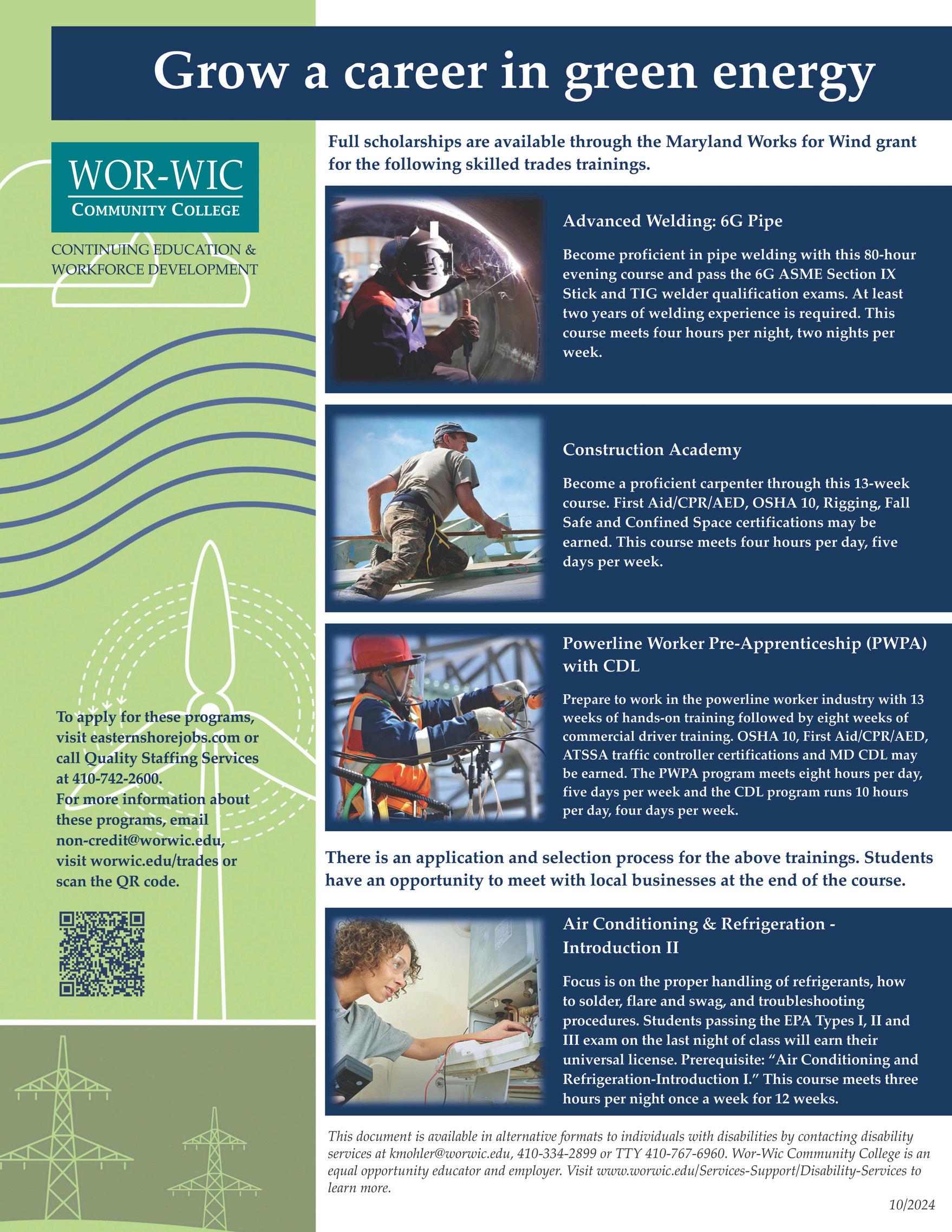 The Lower Shore Workforce Alliance is proud to share our new Job Journal with you this month. Operating as a division of the Tri-County Council, we are one of the 13 workforce development boards in the state of Maryland. Through Job placement, certification, further education, and more—the Lower Shore Workforce Alliance does everything workforce. This Job Journal is provided free of cost to assist job seekers in the Tri-County area and features potential employment opportunities, further education & certification opportunities, and job supporting programs in this area.