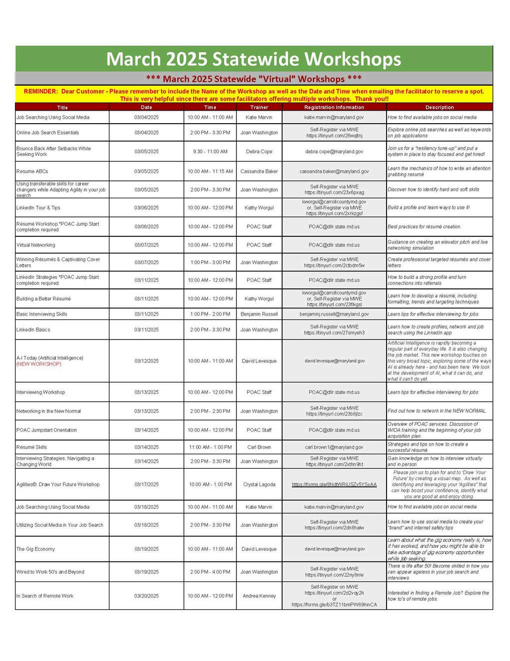 The American Job Center has many resources and organizations to support and assist scheduled and walk-in employment assistance