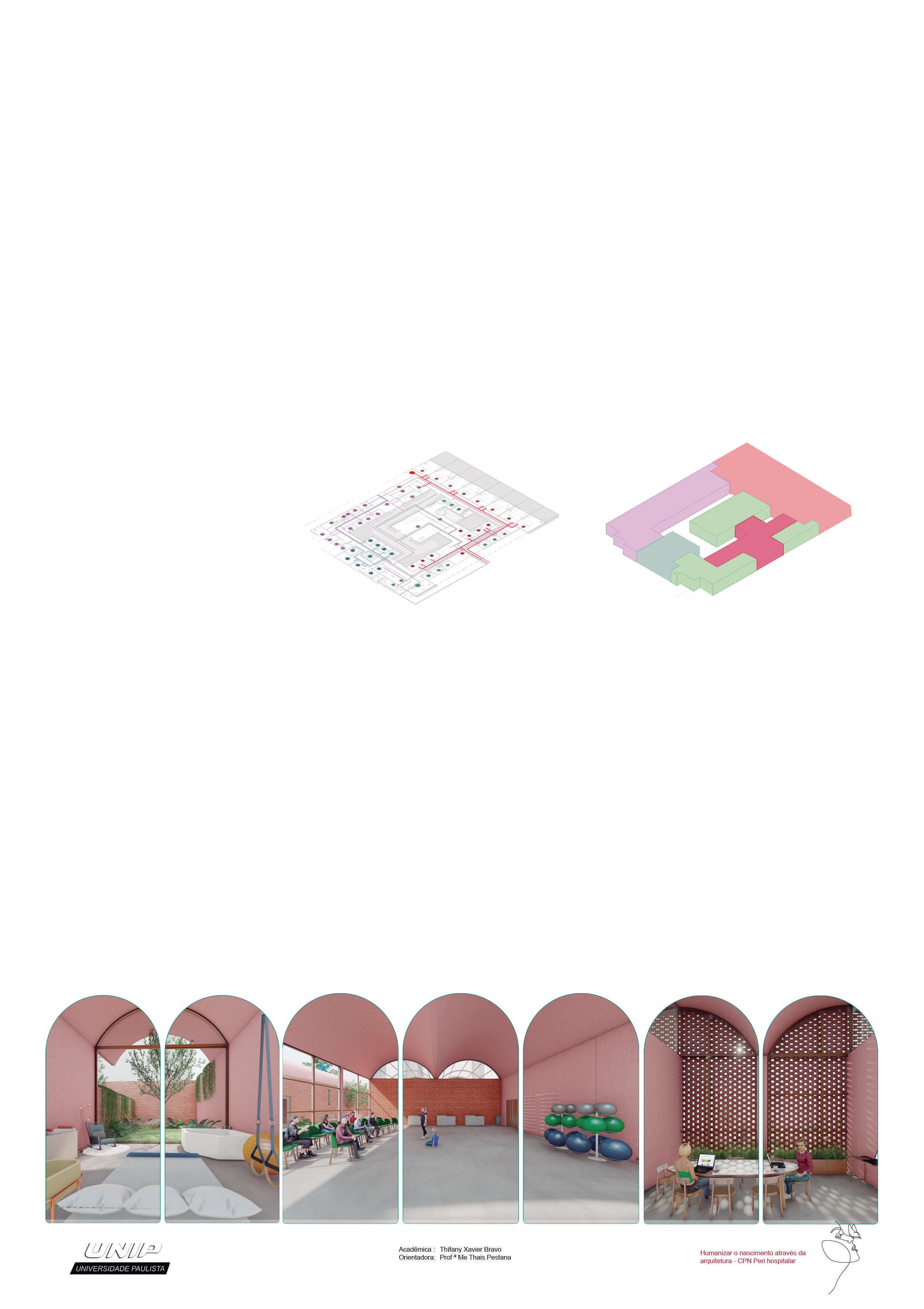 TCC NOTA 10 de THIFANY XAVIER BRAVO para UNIP. Trabalho de arquitetura e urbanismo mentorado pelo TCC Nota 10. Instagram: @tccnota10arquitetura . O objetivo desse projeto é desenvolver, expandir e popularizar um modelo de equipamento de assistência ao parto respeitoso em diversos quesitos, deixando todo o protagonismo, a privacidade e a segurança para a mulher no momento de parir. Com essa proposta pretende-se atingir famílias que querem passar pelo processo do parto humanizado, utilizando técnicas de amenizar as dores, ele pode ser vivido de forma diferente, principalmente quando o ambiente é convidativo e acolhedor, com liberdade de escolha de posição e opção de parto na banheira, banheiro individual e áreas de deambulação para melhor relaxamento do corpo e da mente.
