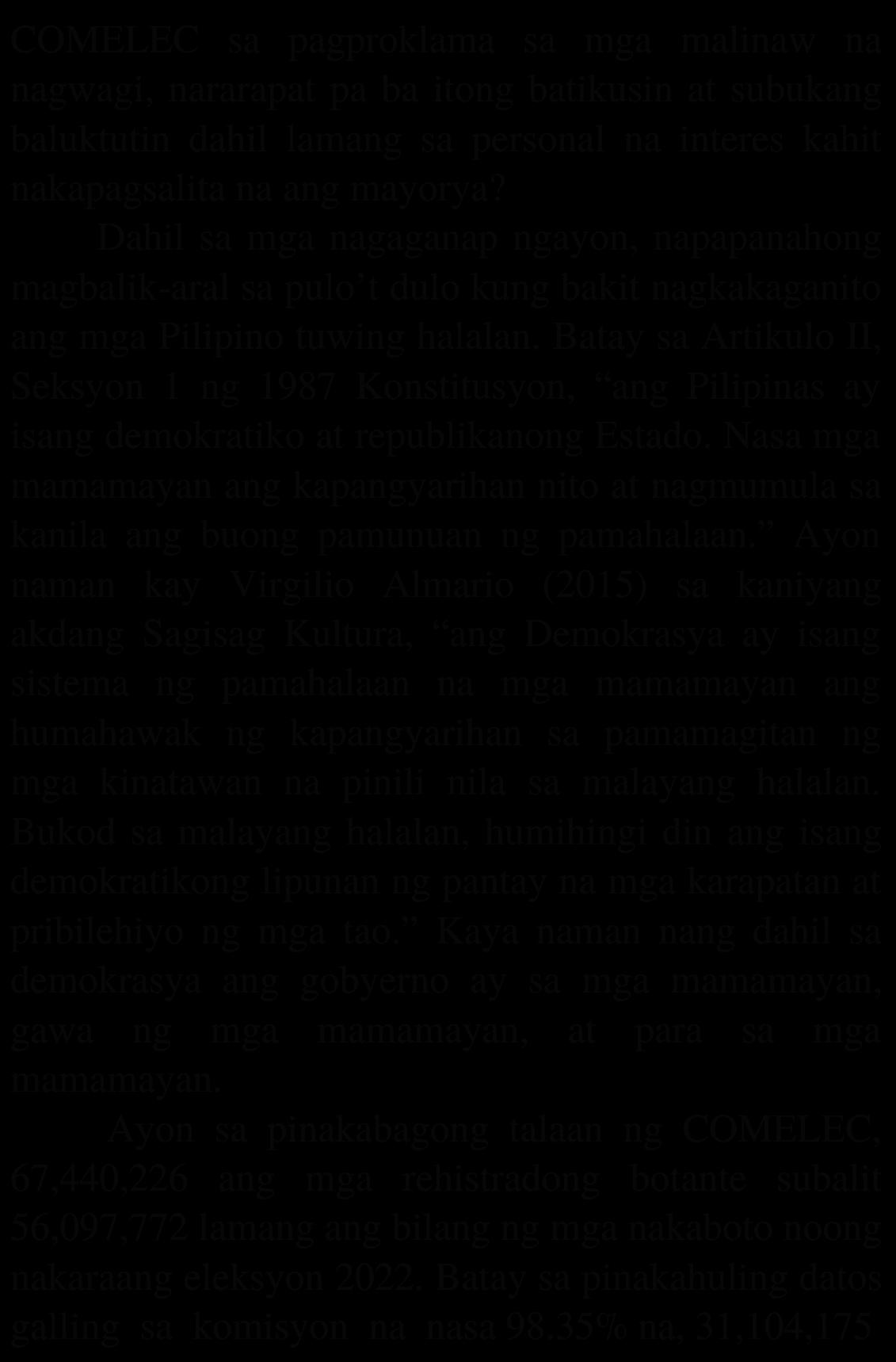 The lionhearted vanguards of truth and change triumphantly revived the spirit of campus journalism at Tagoloan Community College. After six years of hiatus, the school publication brought its organization to life and produced a magazine. It was like the miraculous awakening of a comatose journalistic patient due to the undying passion of proficient wordsmiths and artists. "Revival" is a powerful word that would outline the exquisite theme of this school paper. As my team and I deliberately orchestrated the articles, information, photographs, and aesthetic designs, we were driven by our foremost purpose to resuscitate and emphasize the depth of media in the modern era.