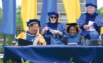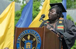 Rivera told his fellow alumni to think back to spring 2020, when students were sent home and classes were completed remotely. “We made our relationships with one another a priority and rec ognized that the only way to weather the storm that was in front of us was to do it together,” he said. A sociology major at Trinity, Rivera was the first in his family to attend and graduate from col lege. He serves as executive director of The Dream Support Network, through which he has worked with more than 40 Connecticut schools, delivered more than 100 speeches, and exchanged more than 40,000 “ice creams for dreams.” He also is pur suing a master of divinity degree at Yale Divinity School.