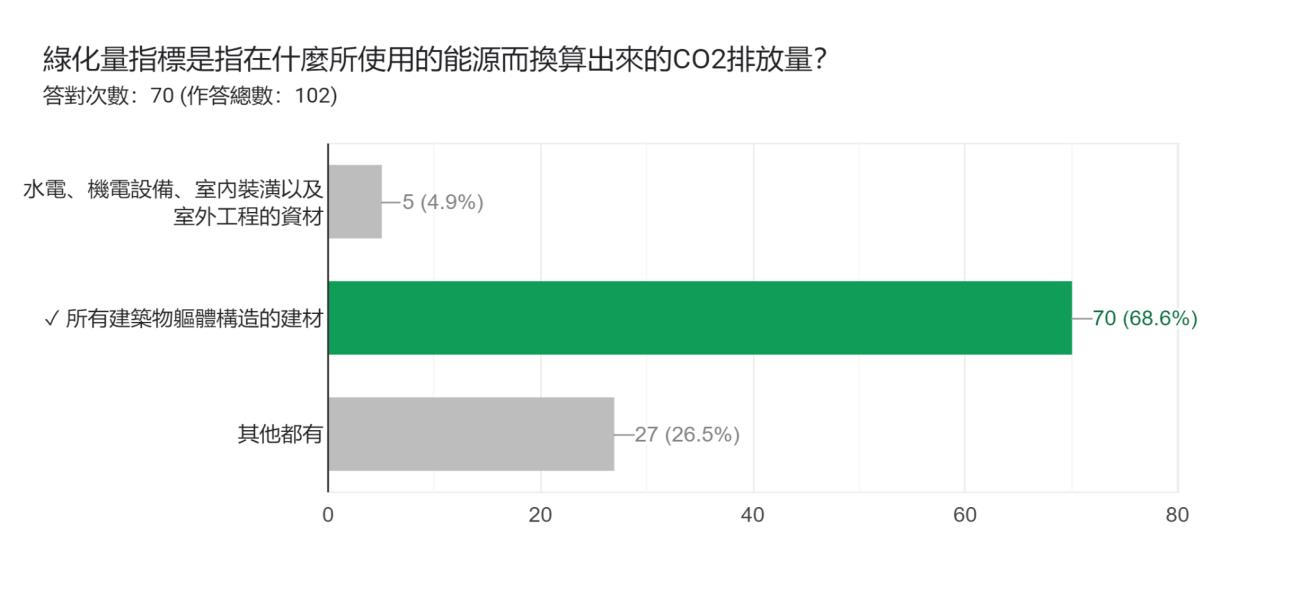 根據數據,這題答對率沒有超過 70%的原因為,這題在簡報中的資料是【建材不 包括水電、機電設備、室內裝潢以及室外工程的建材】,但大家應該都是看錯那麼一