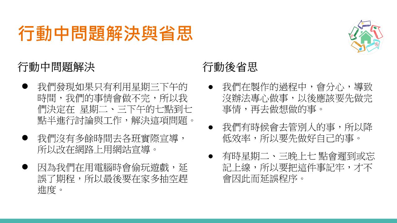 2. 我們沒有多餘時間去各班實際宣導,所以改在網路上用網站宣導。
