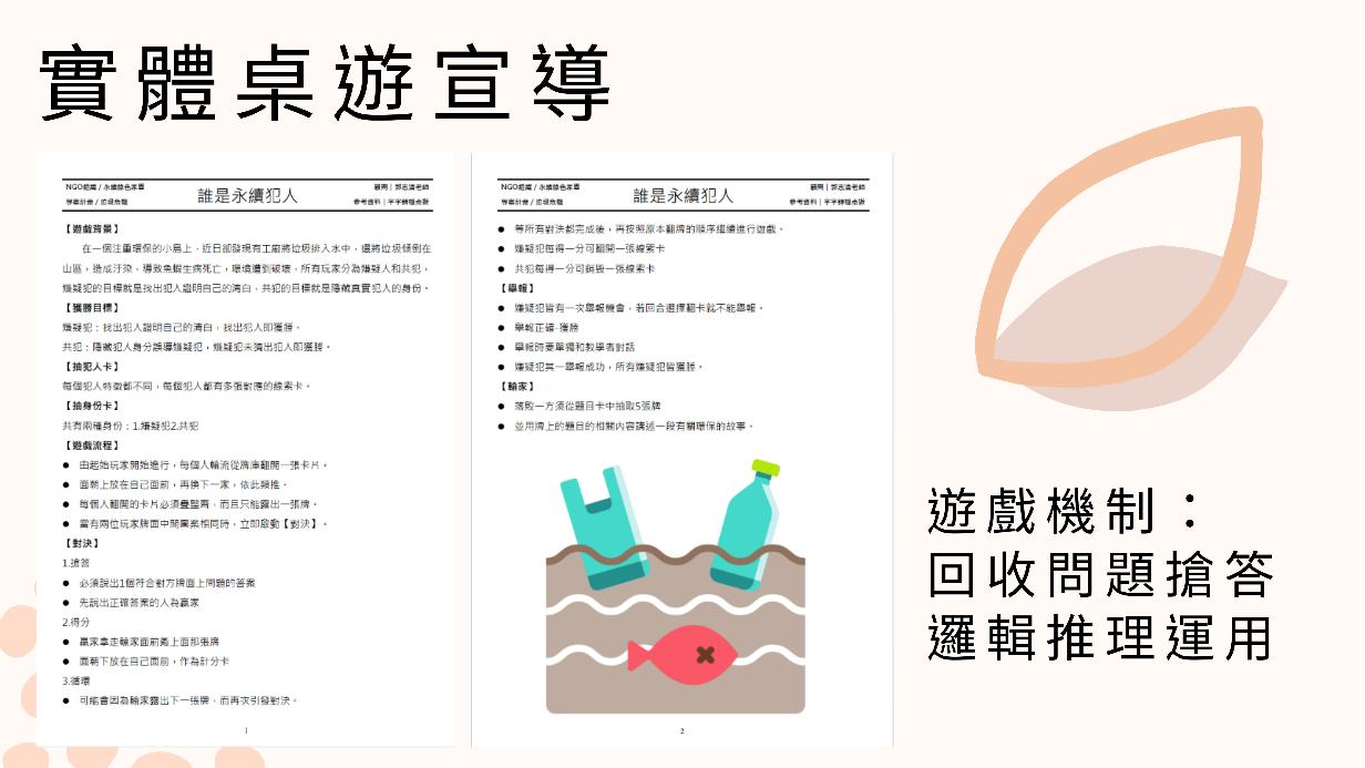 ⚫ 跨域實作:海廢問題-淨化海洋計畫、桌遊海洋危機、桌遊海食王。