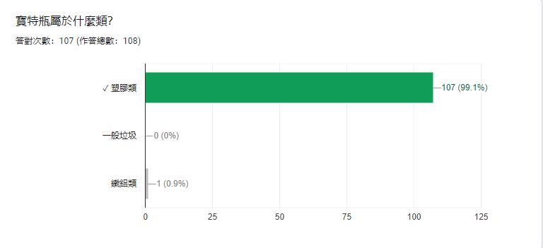這題有 100%的人答對,我們推測是因為寶特瓶在生活中很常見,所以大家答對 率很高。