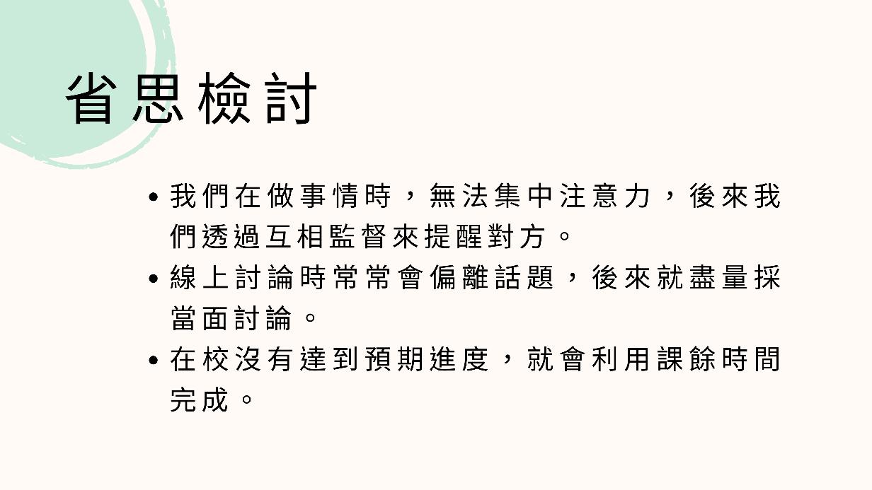 2.線上討論時常常會偏離話題,後來就盡量採當面討論。