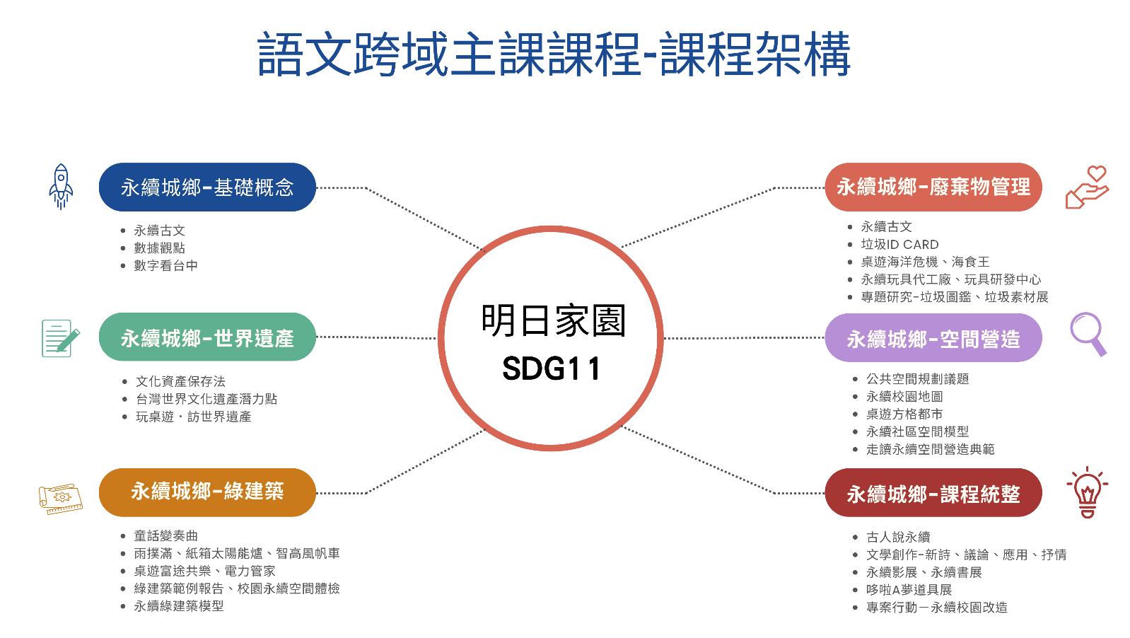 ⚫ 以「聯合國永續發展目標」SDG11 永續城鄉為課程主題,分為六個主要單元,並依循基礎概