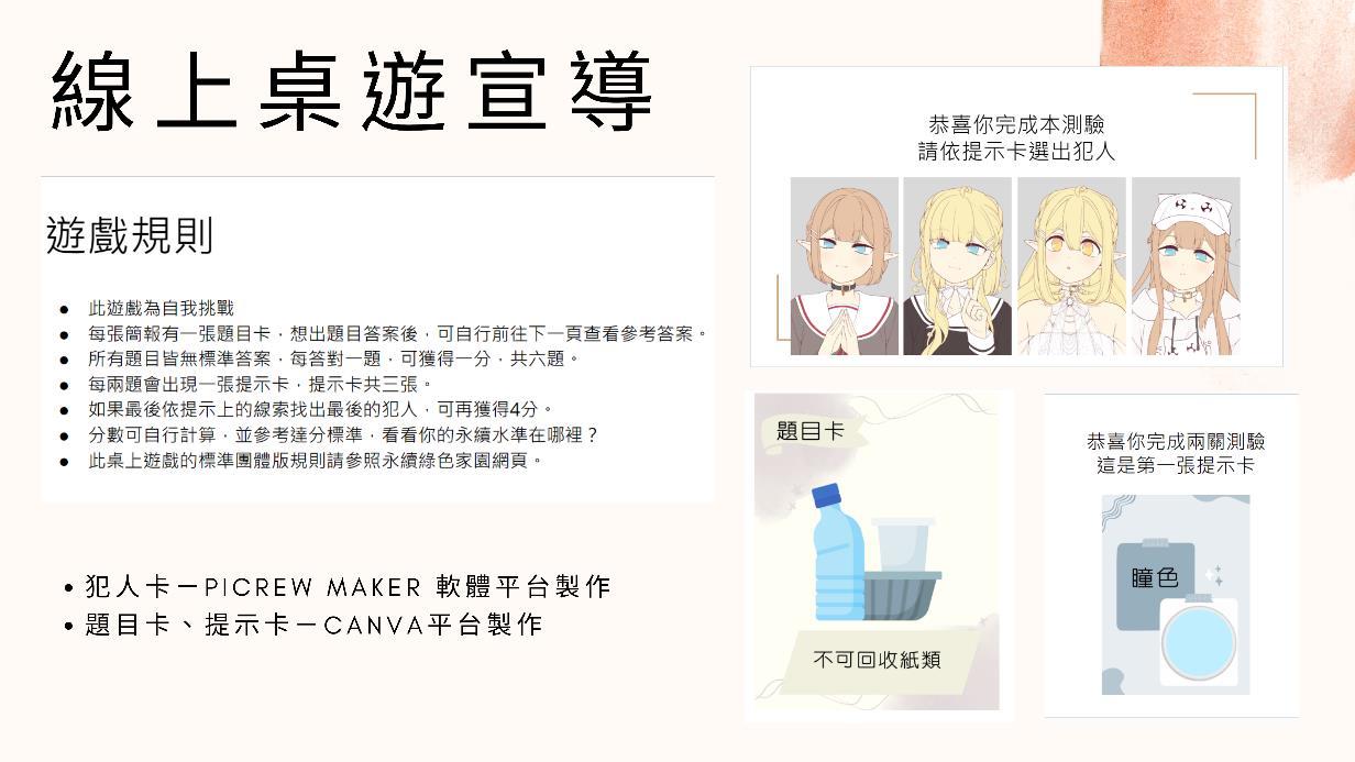 問卷要搭配簡報和桌遊出題,才能了解 宣導成效。