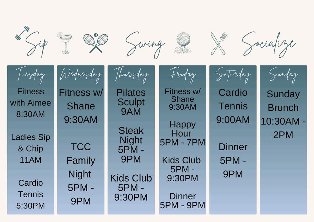 We encourage you to invite your neighbors in TCE who are not yet Club members to join us for lunch or dinner this upcoming Saturday, October 12th!