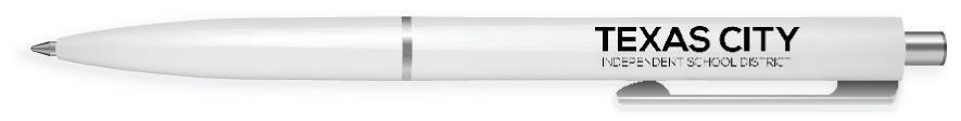 A secondary vision logo may also be used in certain cases, notably on District shirts and attire. This mark is designed to appear on communications where a horizontal logo is better used than the primary square logo. Additionally, the Texas City Independent School District word mark may also be used in instances where the primary logo or full secondary logo cannot be used (e.g. on small promotional items such as pens).