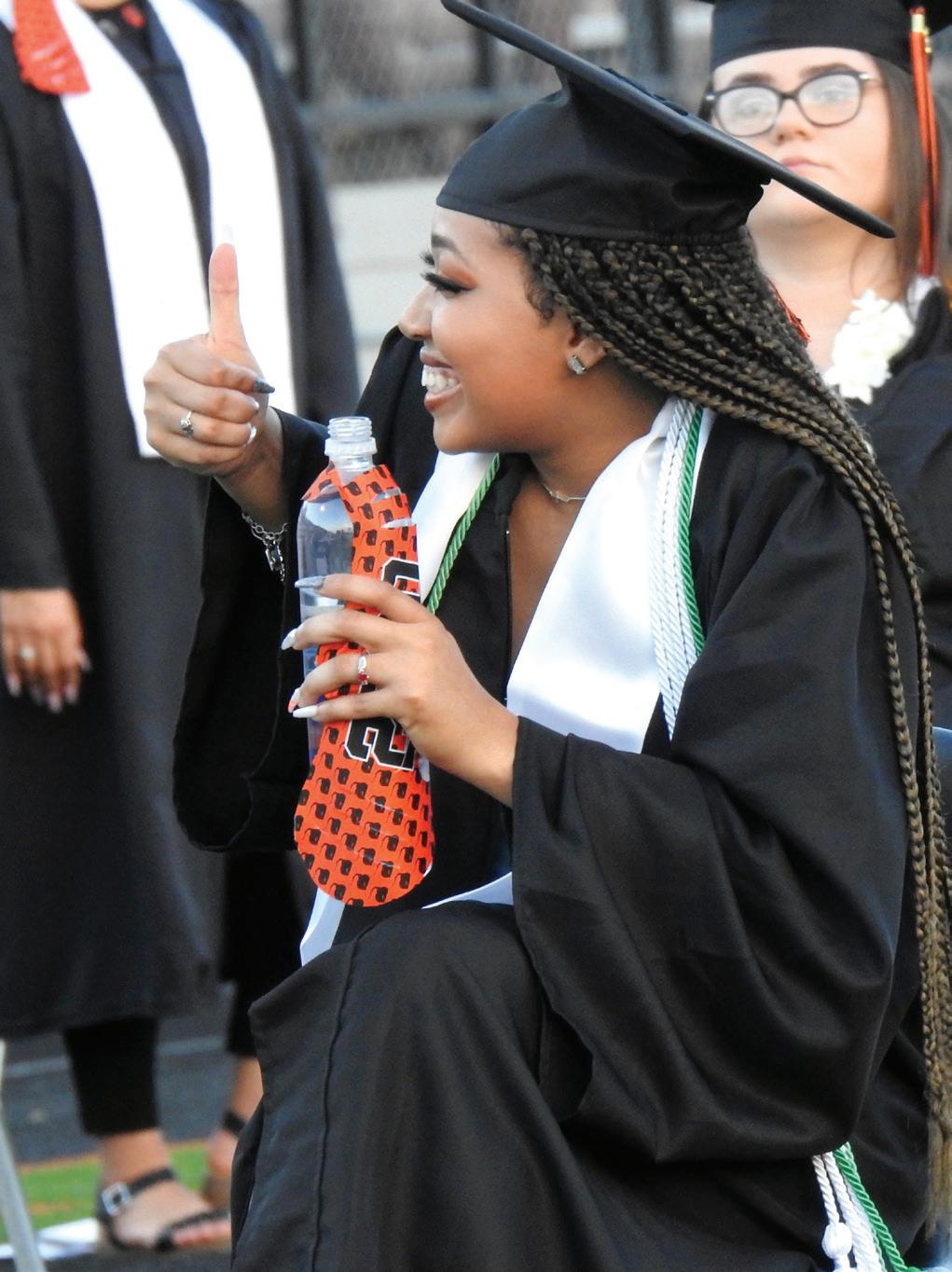 Shariya Anderson-Shumpert gives a thumbs up to her family at the 2020 graduation ceremony.