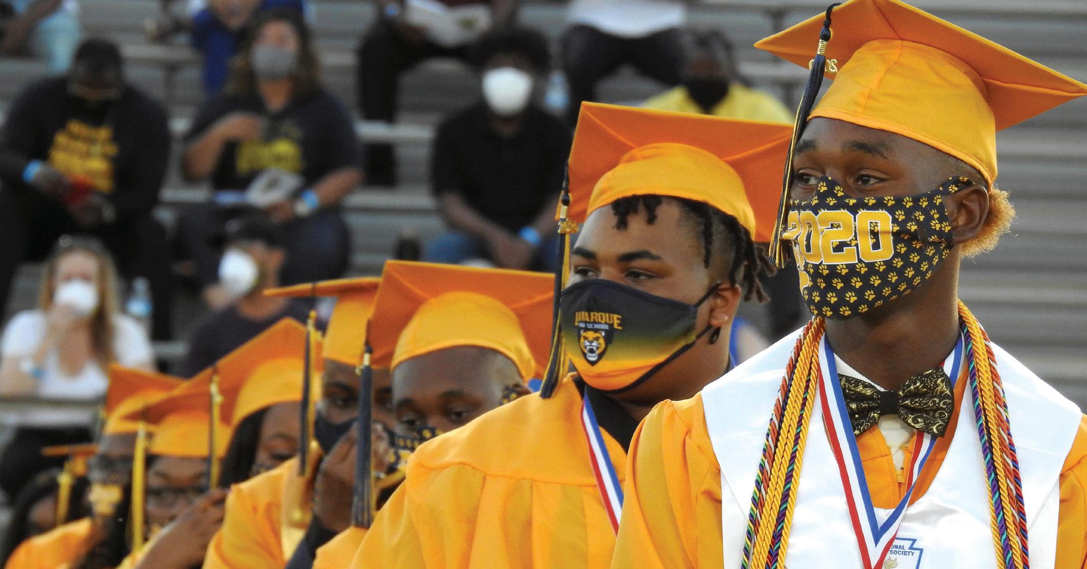 TOP RIGHT LMHS graduates wear face masks as part of their graduation ceremony.