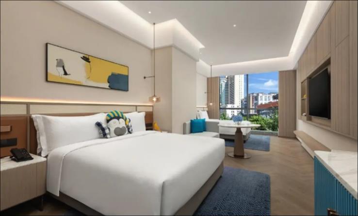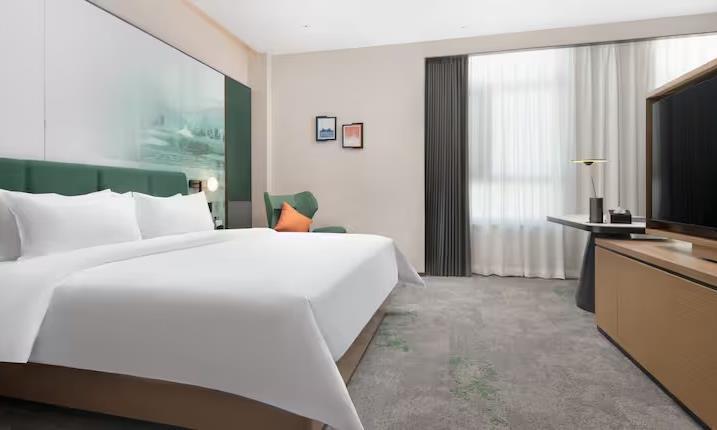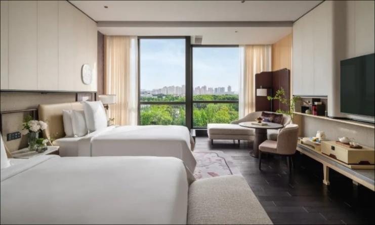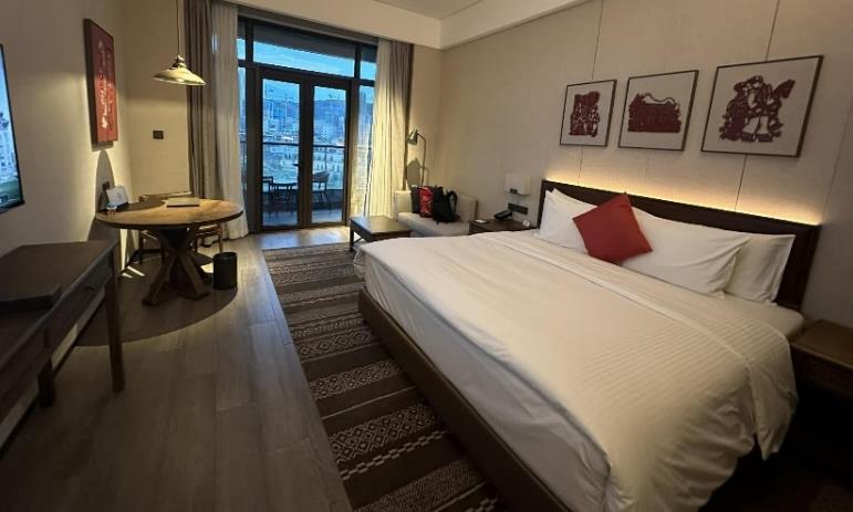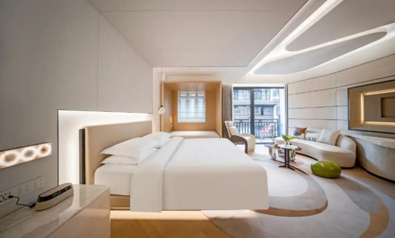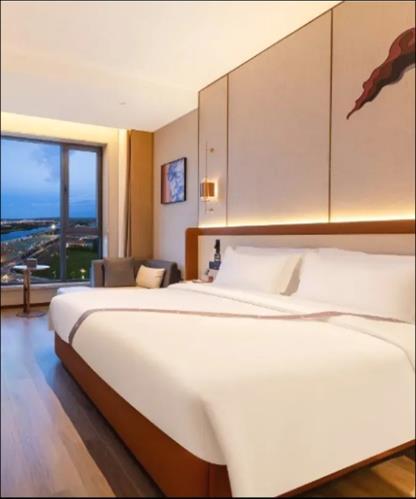 海寧入住2025年開業的Yanguan Music Lead Vocal Resort Hotel (保證入住,絕無同級) 。鹽官主唱音樂度假酒店位於潮樂之 城南側,緊鄰錢塘江畔。酒店房間依託潮樂之城音樂主題設 計理念,將古今音樂元素融入建築室內設計中,將歌劇院的 氣派與搖滾放克元素融合起來,演繹着東方戲曲與雅痞爵士 的火花,這一切如同戲曲般生動。 優越居停
