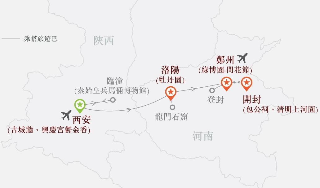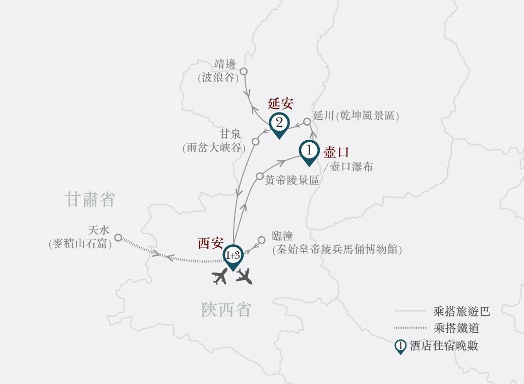 陝西波浪谷、甘泉雨岔大峽谷、壺口瀑布、西安兵馬俑、 甘肅麥積山石窟8天