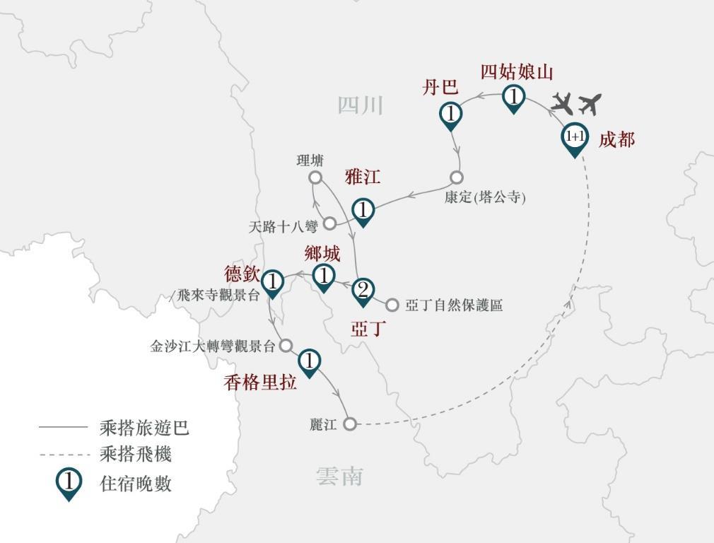 四川四姑娘山、丹巴、新都橋、稻城亞丁、雲南梅里雪山、 香格里拉11天 CCT11(ZL)