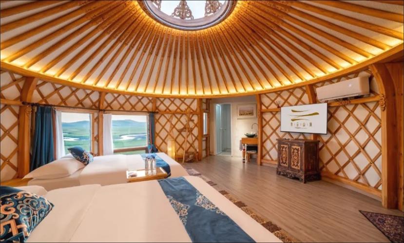 特別安排入住「牧雲山頂」特色木屋或 蒙古包或同級,獨享星空下的草原寧 靜。滿洲里入住國際五星Shangri-La香 格里拉大酒店或同級,一流享受。漠河 連續兩晚入住2025年全新開業藝龍酒 店或同級,打造靜謐的住宿體驗。
