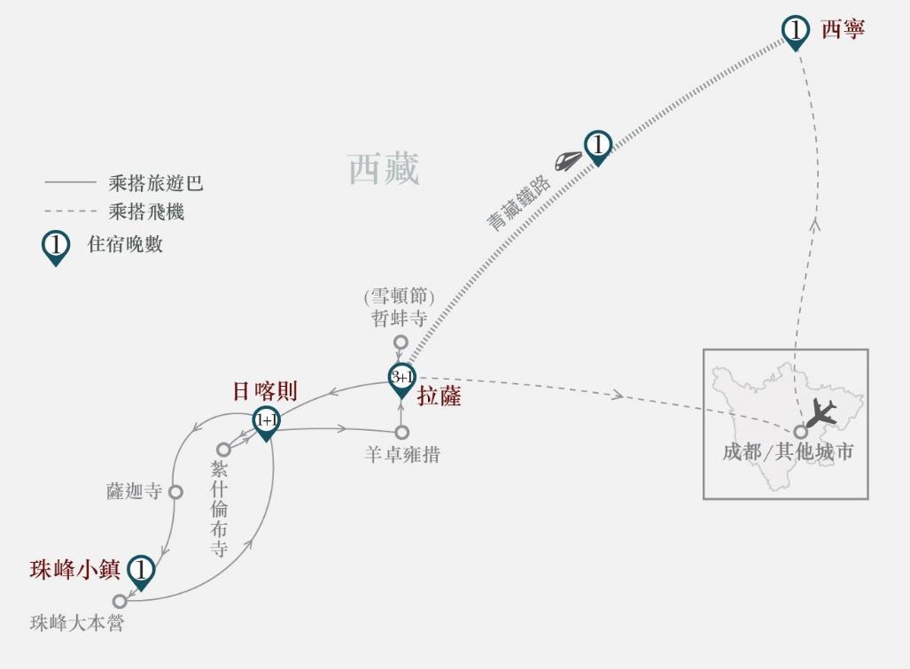 西藏雪頓節、珠峰大本營、青藏火車(2人1廂)、納木措10天