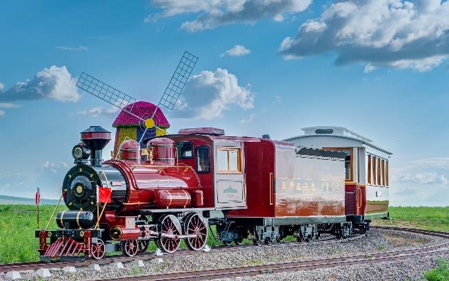 於額爾古納市黑山頭鎮登上「草原在這裏」小火車 深入草 原的心臟 漫賞遼闊壯麗的草原風光。在天然草坡上體驗滑 草樂趣,坐上滑板從山坡滑下來,綠色的浪潮迎面撲來,風 從耳邊呼呼掠過,享受速度與青草氣息帶來的舒暢。