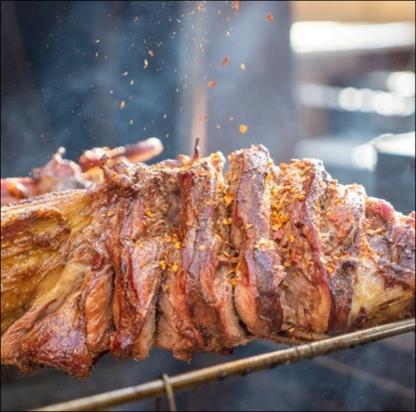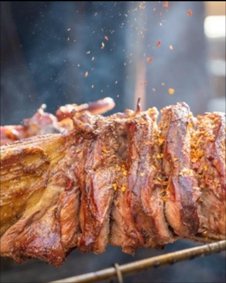 烤全羊是源自內蒙古及新疆的傳統美食,選用膘肥體壯的 綿羊,經特殊屠宰法處理,清洗並除去內臟後,表面抹上 蛋黃、孜然、胡椒、麵粉調製的醬料,放入特製的饟坑以 慢火炭烤。其特色為皮脆肉嫩、色澤紅黃、鮮美多汁,是 蒙古族款待貴賓的佳餚。