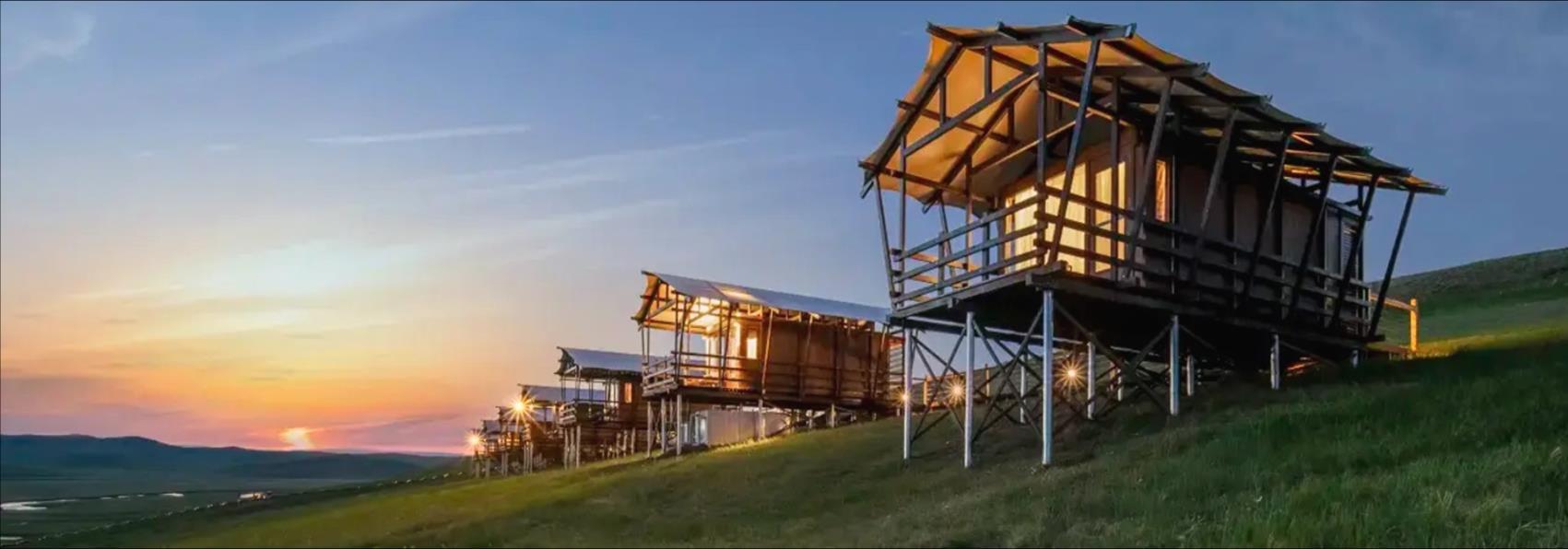 牧雲山頂酒店(Muyun Resort)坐落於呼倫貝爾大草原的莫 日格勒河視角點之上,是呼倫貝爾以民宿理念為基礎的精 品度假休閒酒店。酒店有大床、標間可隨時切換的現代木 質觀景房 也有純手工雕刻的木質結構蒙古包房型 結合 一望無際的草原風光 讓您感受與天地同息的節奏。