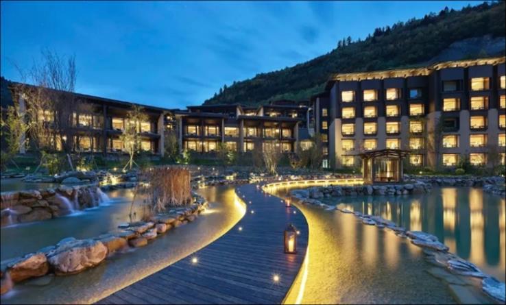 • 元謀入住於2023年開業的元謀遠達國際溫泉度假 酒店或同級。酒店選址熱水塘村,鑿引鳳凰山下深 藏地底1,400米處的天然溫泉,被全國溫泉旅遊泉 質等級評定委員會授予「優質珍稀溫泉」,共有37 處森林系高溫、中溫、低溫湯池(其中包括17個私 湯泡池)。