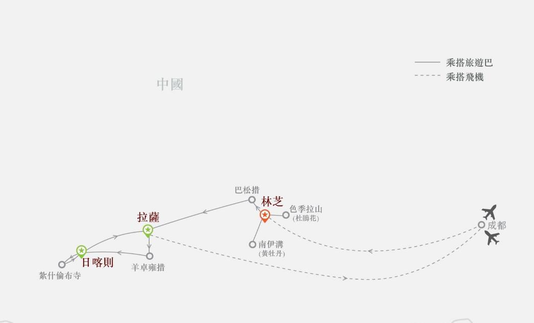 西藏林芝、南伊溝黃牡丹、色季拉山野生高原杜鵑花海、 拉薩、日喀則9天
