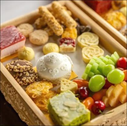 唐代飲食文化繁榮,食材豐富多樣,隨著農業與絲綢之 路的發展,葡萄、胡椒、胡餅等西域食物也進入唐人餐 桌。烹飪技術進步,煎、炸、烤、燉等多種方式讓菜餚 更加精緻,宮廷御膳尤為講究,注重色香味俱全。飲食 禮儀體現社交文化,宴席講求座次與敬酒禮儀,貴族與 文人雅士常在華麗的宮廷宴飲間交流思想。宮廷飲食講 求珍貴食材與精美刀工,而民間則以米飯、麵食為主, 並有胡餅、豆腐、湯圓等特色小吃。飲食與藝術緊密相 連,許多詩人如杜甫、白居易的作品中皆有飲食描寫。 唐代飲食不僅影響後世,也透過絲綢之路傳至周邊地區, 成為中國飲食文化的重要基石。
