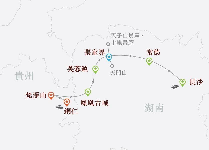 貴州(梵淨山)、湖南(鳳凰古城、芙蓉鎮、張家界、常德、 長沙)8天 CUC08(ZL)