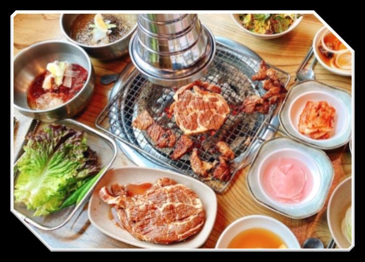 備受歡迎的韓國地道韓燒餐廳,為食客帶來正宗的韓燒美食體 驗。主打菜式是梅頭豚上肉及特盛豬扒,豬扒厚度約15mm, 經過韓式秘製醬料醃製72小時,肉質非常腍軟,纖維細緻,脂 肪分布均勻,肉汁豐盈。配上韓國泡菜、芝麻油或大豆醬和蒜 片,再以生菜包肉,令惹味的烤肉增添一點清新滋味。
