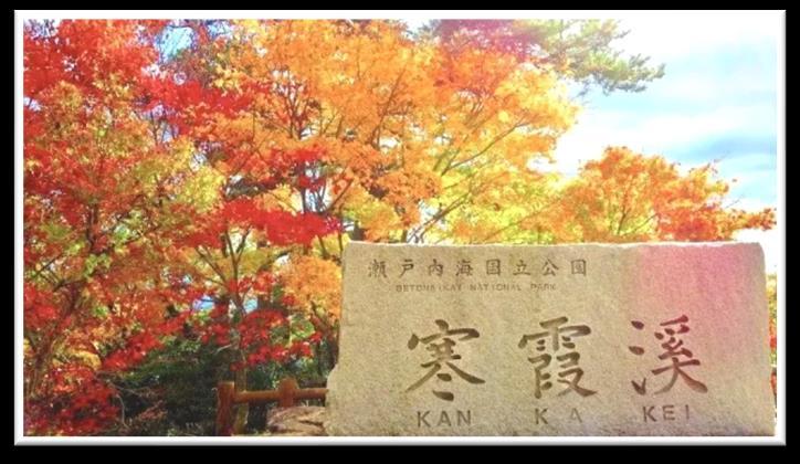 位於香川縣小豆島的「寒霞溪」,是日本三大溪谷之一,約1,300萬年前 的火山活動,造就了現在鬼斧神工的奇岩怪石與高聳群峰。每到11月中 旬至12月上旬,搭乘「寒霞溪纜車」,俯瞰被染成紅色的大片山頭,及 眺望碧藍的瀨戶內海,繚繞宛如人間仙境。
