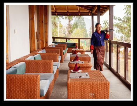 普納卡河畔午餐,在寧靜的河畔 享受野餐,欣賞普納卡宗及山谷 的美景;於群山環抱的農舍裡, 與當地人共享一桌暖心幸福的不 丹滋味餐。另每晚均安排於入住 酒店享用晚餐,體驗更舒適優越。