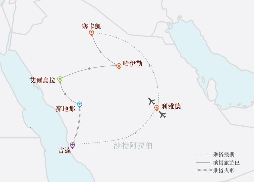 暢遊:利雅德、塞卡凱、哈伊勒、內夫得沙漠、艾爾烏拉、麥地那、吉達
