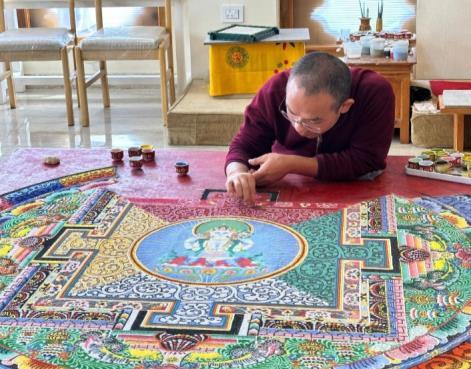 是藏傳佛教的一種藝術與修行方 式,使用彩色的沙子在平面上堆 砌出精緻的「壇城」(曼荼羅)圖 案。行程安排壇城沙畫工作坊, 可觀摩專業沙畫師製作沙畫過程, 親手DIY屬於自己的作品。