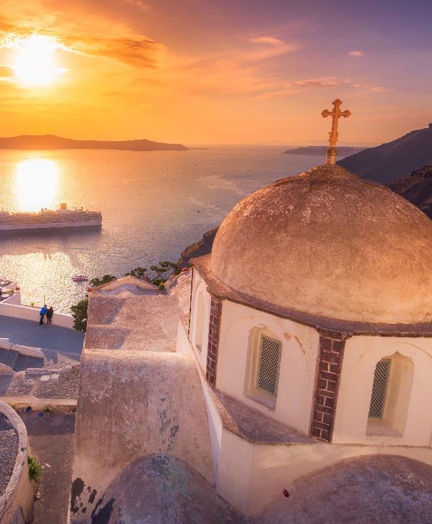 • 相比一般郵輪,Celestyal 在聖托里尼、米克諾 斯等熱門島嶼的停靠時間更長, 這讓旅客能盡情 欣賞世界級的愛琴海日落與夜景。