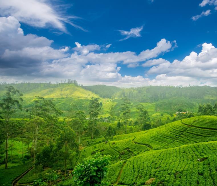 茶山火車/錫蘭茶廠 乘坐火車穿行於斯里蘭卡翠綠綻放、 滿山茶園的丘陵之間,沿途風景如 畫,層巒疊翠,被譽為全球最美麗 的高原鐵路之旅之一。前往有「小 英國」之稱的努沃勒埃利亞,參觀 錫蘭茶廠了解製茶過程,並可品嚐 地道有名的錫蘭紅茶。