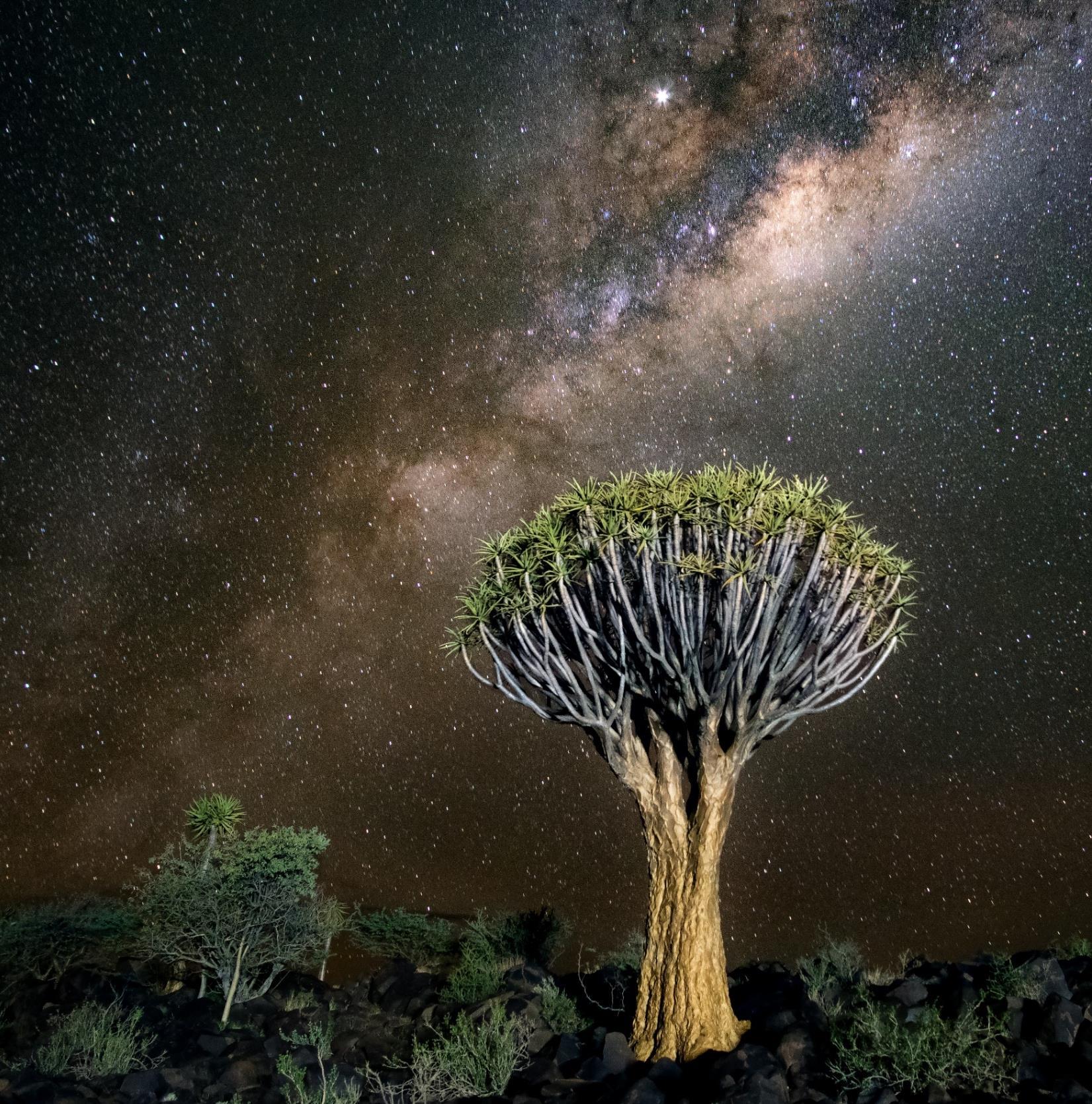 • 向基特曼斯胡普進發,當地的箭袋樹外形看似是樹 木,實則它是蘆薈屬植物,因為其內部的組織容易 挖空,因此被布許曼人作為箭袋的原材料而得名箭 袋樹,雖箭袋樹於非洲南部為常見植物,但茂林卻 是罕見,安排前往箭袋樹茂林,並於無光害影響的 自然環境觀賞星雲的美妙,夜空星羅棋布,繁星點 點,於旱季期間更有機會看到清晰的銀河。