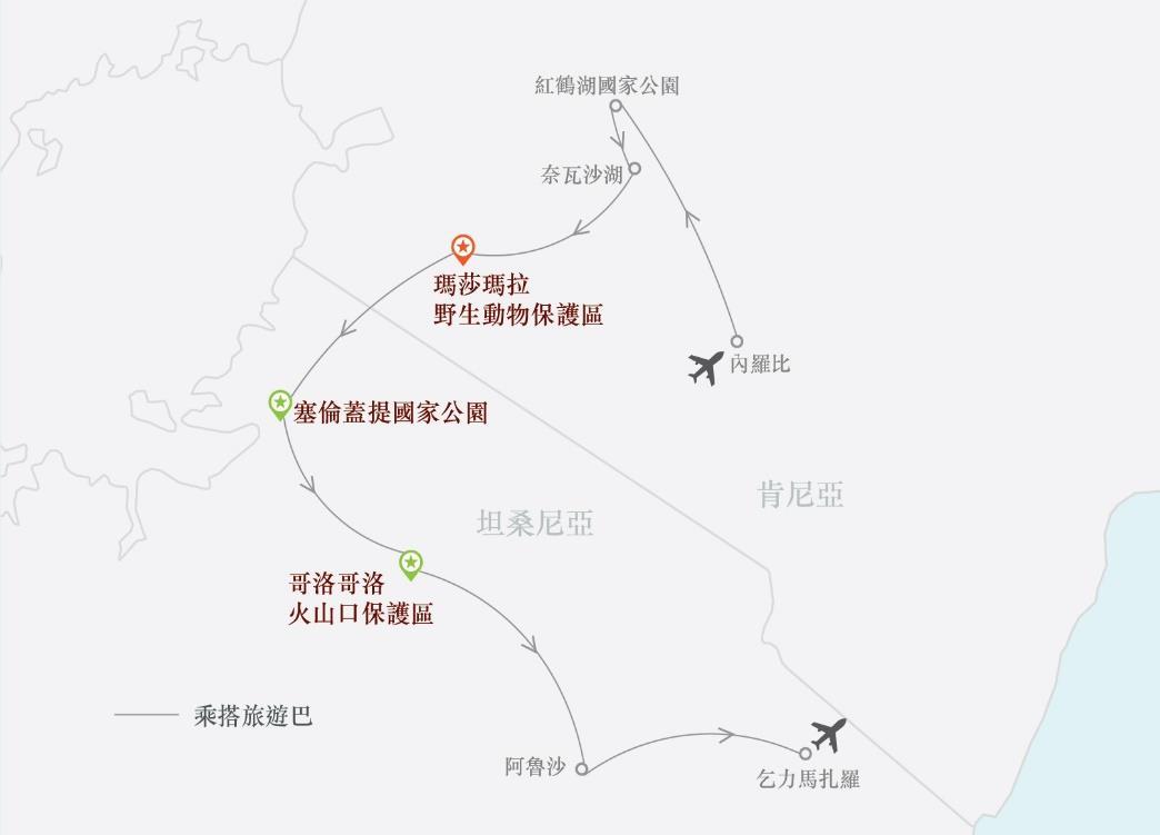 暢遊:阿布岱爾、紅鶴湖、瑪莎瑪拉、 塞倫蓋提國家公園、哥洛哥洛火山口保護區