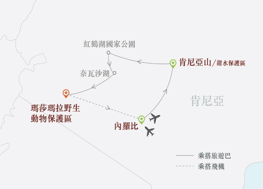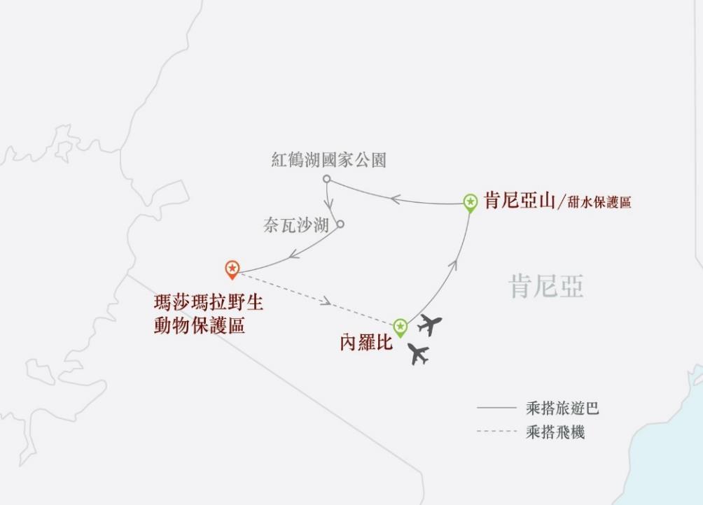 暢遊:內羅比、肯尼亞山國家公園 / 甜水保護區、紅鶴湖、瑪莎瑪拉