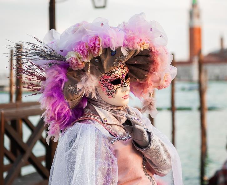 • 觀賞一年一度的威尼斯面具節,於聖馬可廣場欣賞裝 扮浮誇華麗的參賽者爭奇鬥豔,與這些「神秘面具人」 盡情拍照留念。