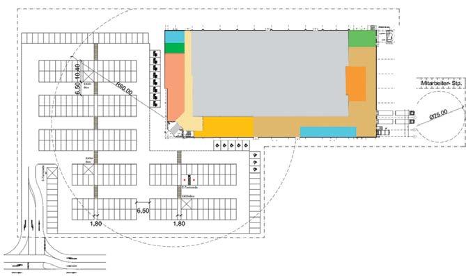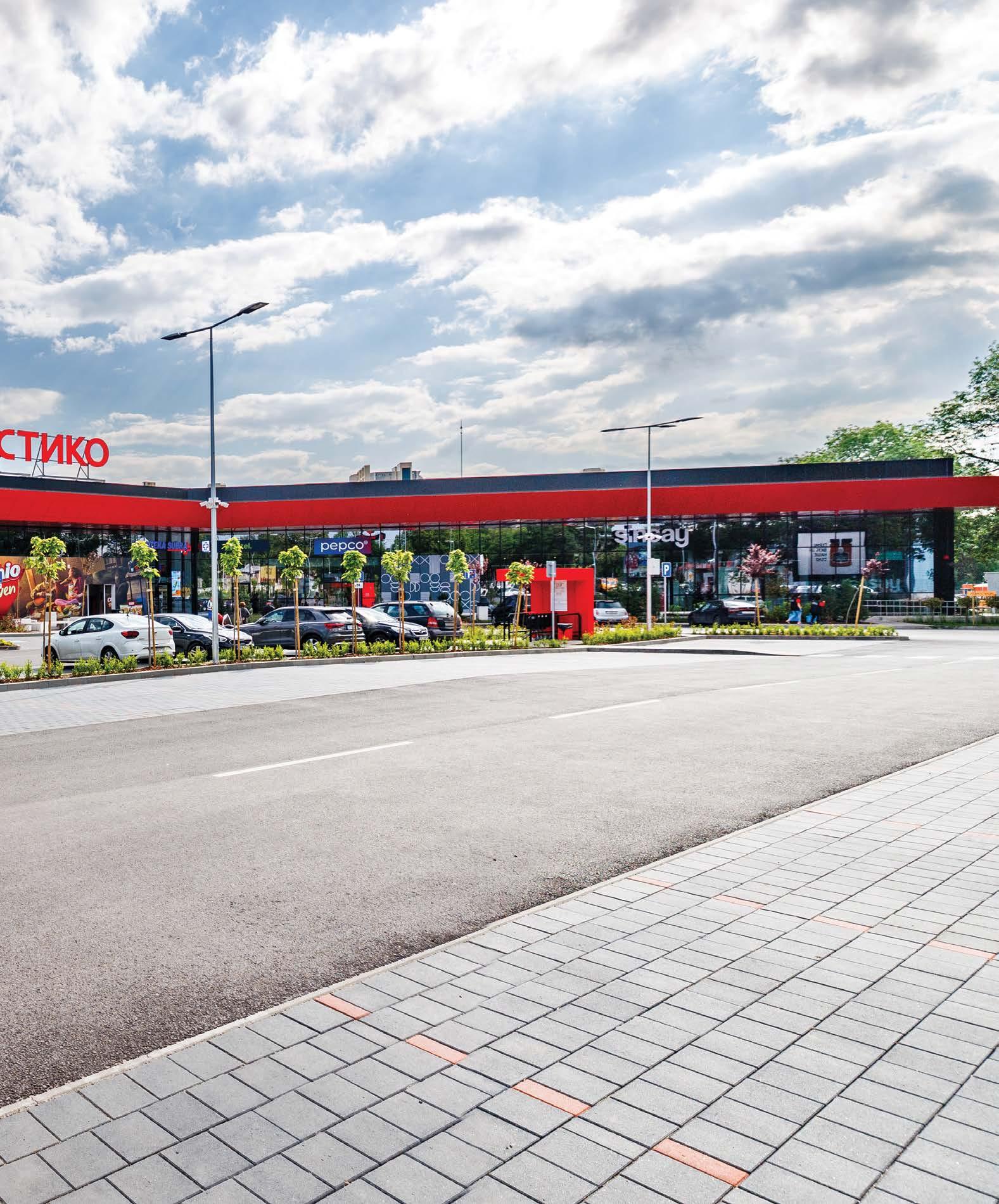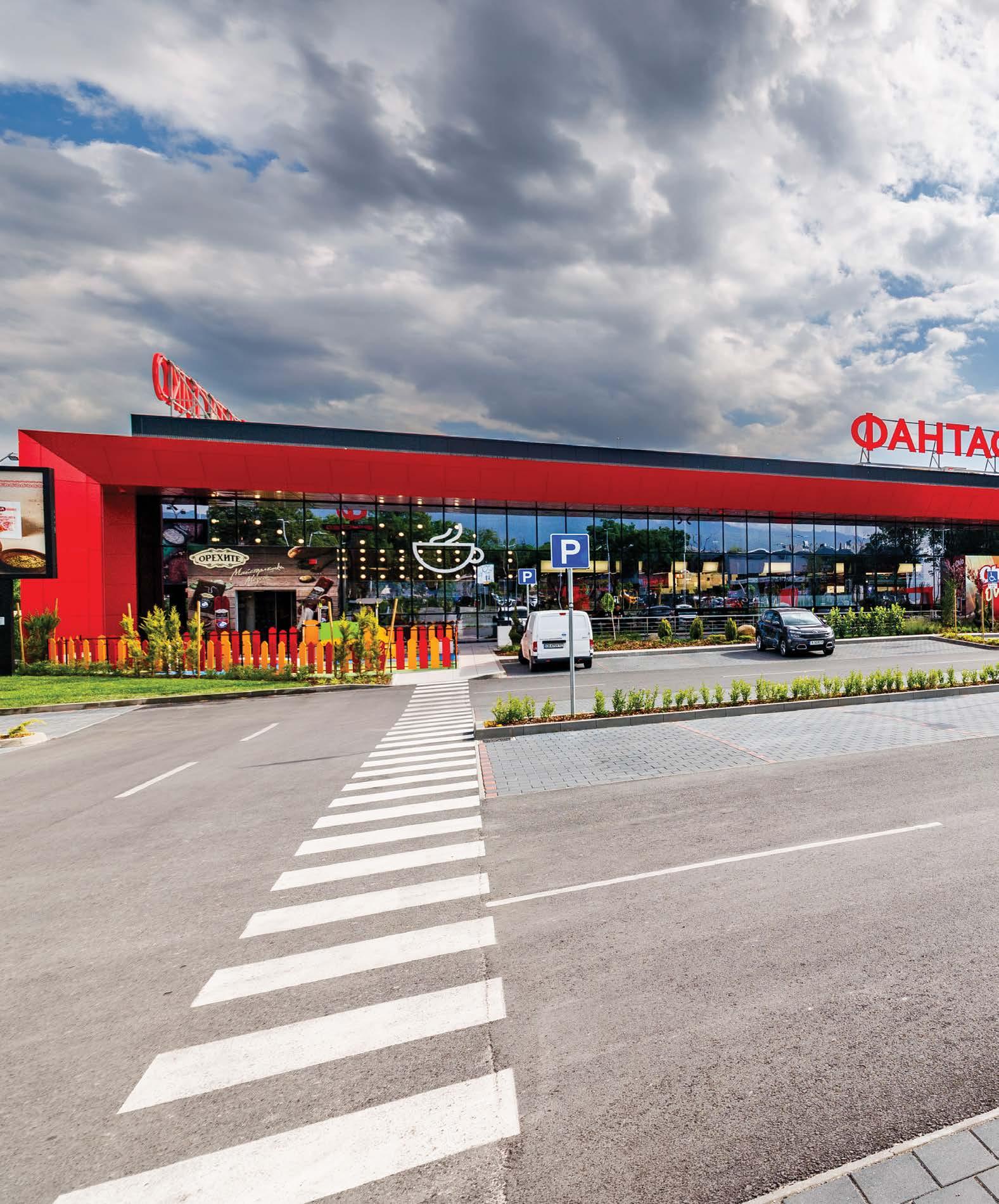 нивото за паркинг е на покрива на самия магазин. Нетрадиционно решение както за Европа, така и за България. „Подобни сгради са много сложно конструктивно изпълними. И затова много рядко се проектират такива. В случая