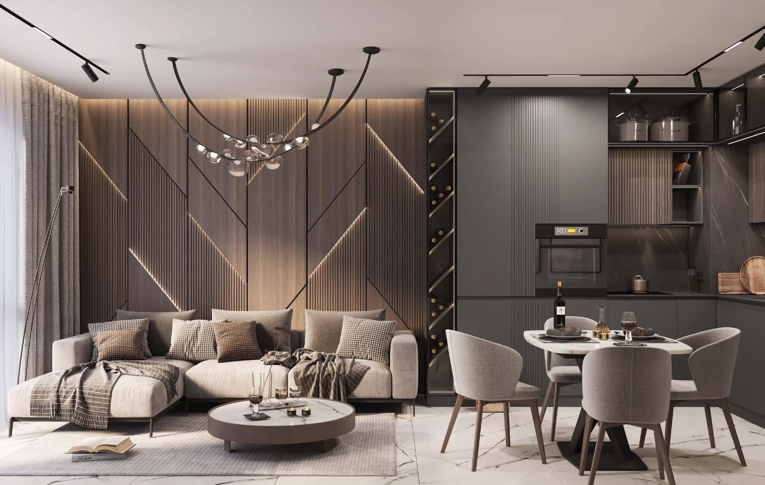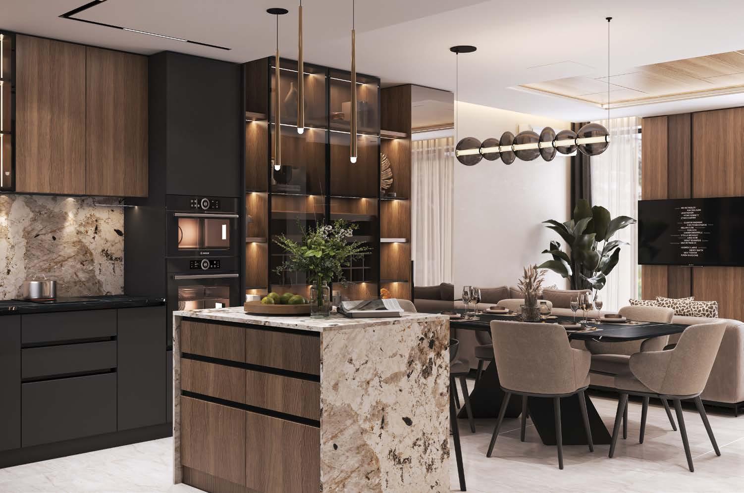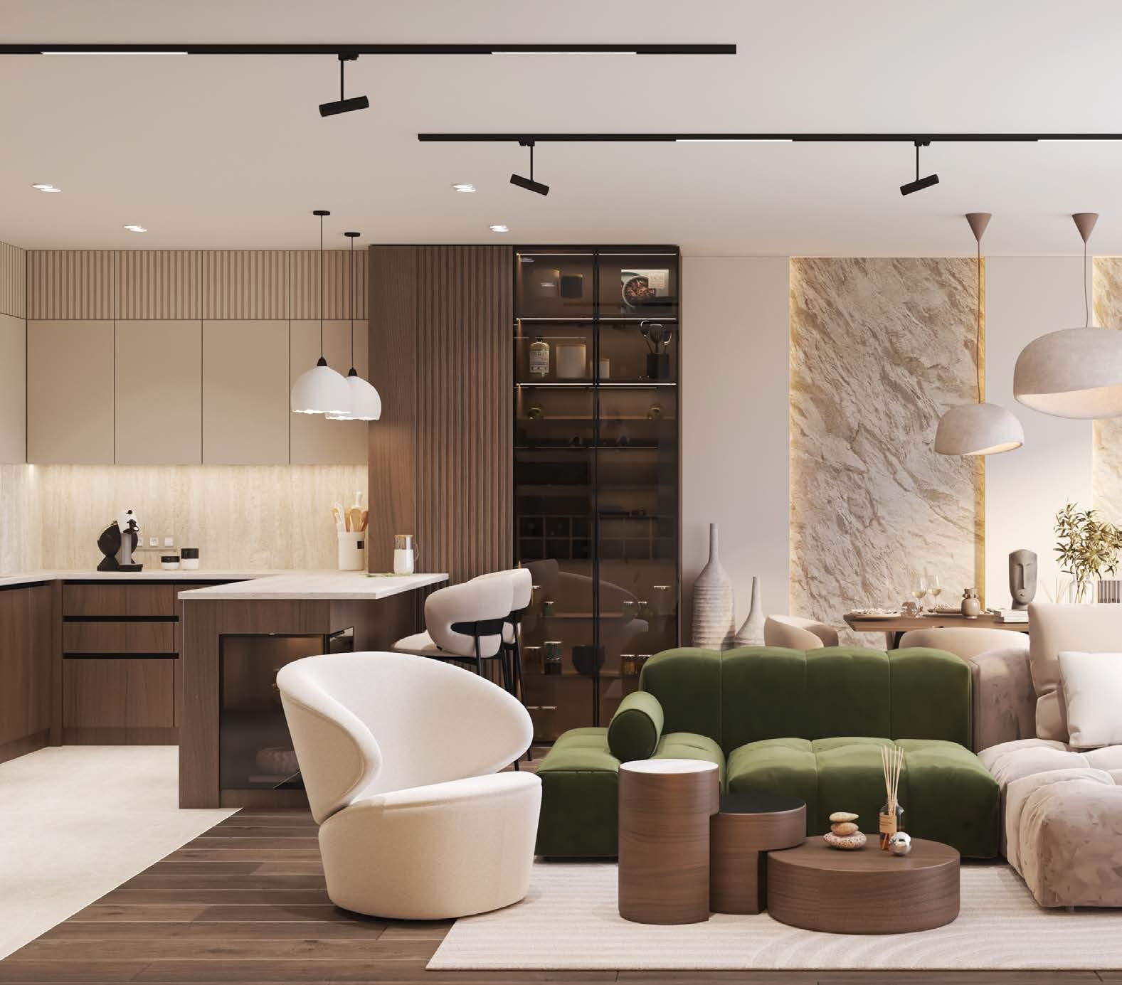 и обединяване на имоти. Интериорите са завършени „до ключ“ с материали от висок клас: Egger Pro подови настилки, дограма Kommerling, италиански тапети, оборудвани бани с Grohe и Roca, както и модерни кухни с техника Electrolux, Bosch и Samsung.