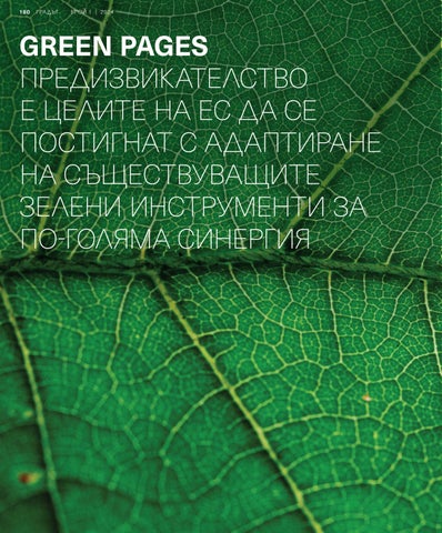 GREEN PAGES ПРЕДИЗВИКАТЕЛСТВО Е ЦЕЛИТЕ НА ЕС ДА СЕ ПОСТИГНАТ С АДАПТИРАНЕ НА СЪЩЕСТВУВАЩИТЕ ЗЕЛЕНИ ИНСТРУМЕНТИ ЗА ПО-ГОЛЯМА СИНЕРГИЯ