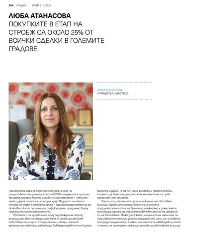 ЛЮБА АТАНАСОВА ПОКУПКИТЕ В ЕТАП НА СТРОЕЖ СА ОКОЛО 25% ОТ ВСИЧКИ СДЕЛКИ В ГОЛЕМИТЕ ГРАДОВЕ