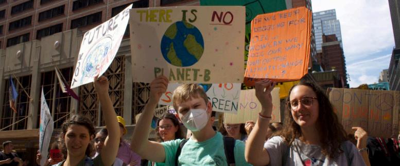 Students from the College participate in the NYC March to End Fossil Fuels.