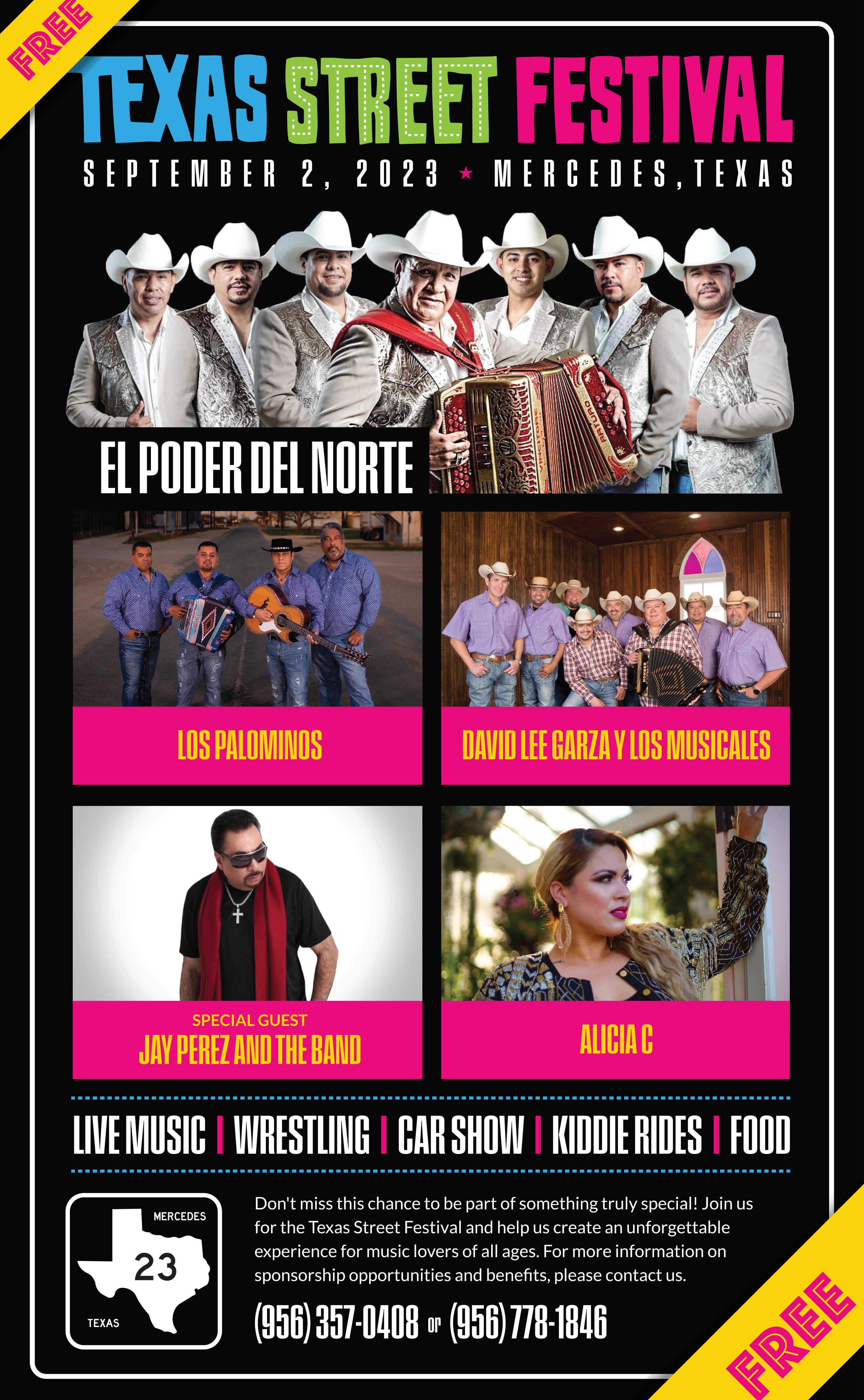 The 15th Annual Texas Street Festival will be on Saturday, September 2, from 12 p.m. to 12 a.m. The Celebration will be in downtown, the heart of Mercedes in the corner of Texas business 83 and 5th street.
