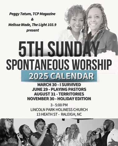 In this edition, we proudly feature beloved gospel radio personality Melissa Wade (In The Water) on our cover. Her love for the community is undeniable, and we celebrate her impact. We are also excited to partner with Melissa as the 5th Sunday Spontaneous Worship co-host.