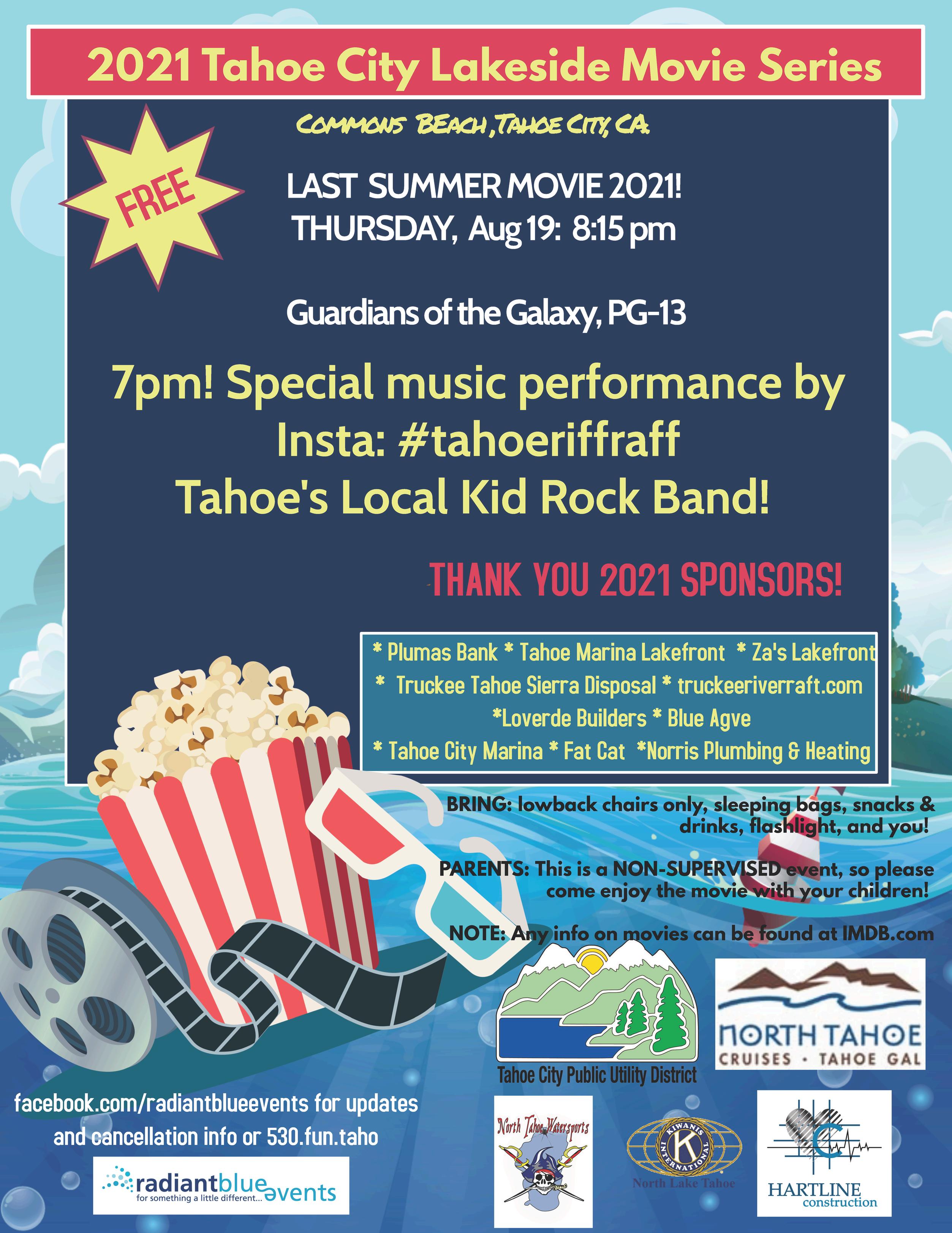 Owned by Placer County and operated by the TCPUD, Commons Beach is a popular site for sunbathing, swimming and picnicking. Located within a large lakefront grass and sand area, there are group picnic sites and children's playgrounds. The park also has a group barbecue area that can accommodate up to 75 people. Adjacent to that is an amphitheater that will seat another 65. Each of these areas is available for private rental along with many other outdoor venues maintained by the Tahoe City PUD.