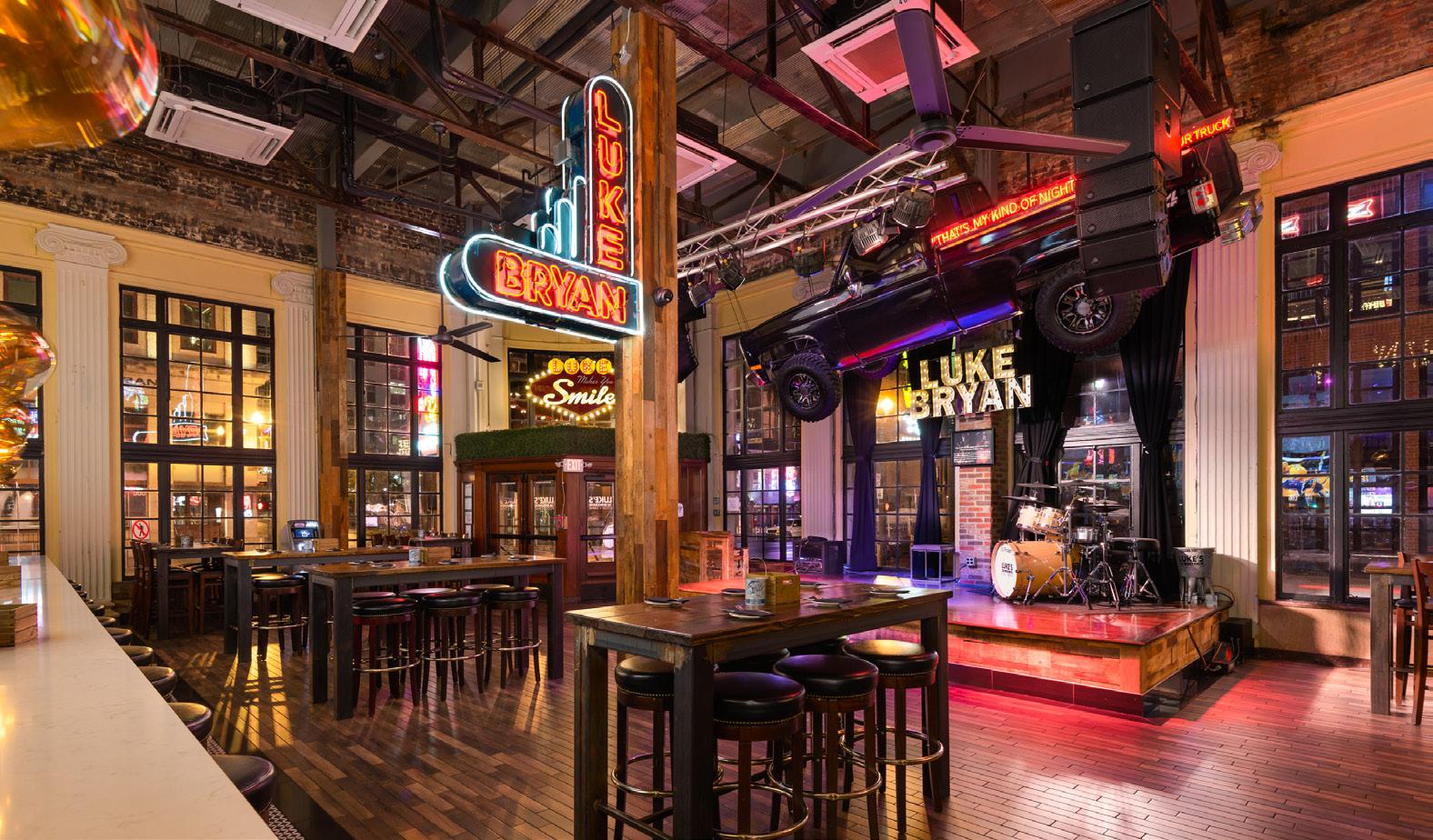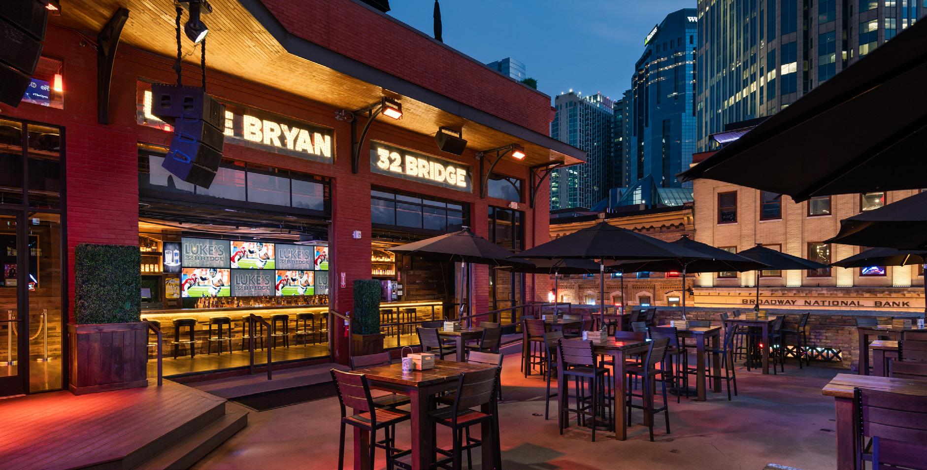 Multi - Platinum county music artist and American Idol judge Luke Bryan invites you into his 5-level restaurant and entertainment venue. Luke’s 32 Bridge has something for everyone with two live bands and nighttime DJs playing Nashville’s hottest music.