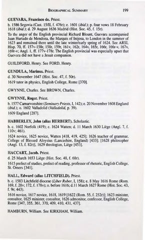 b . 25March 1547 (203) or 1 March 1553 Wells(Rom 53, f 66r); e 1 September 1572 Rome(Rom. 169 ,f. 11r; 171/A, f.21v);8 o 17 December1583 Bordeaux (305); p. four vows 6 October 1591 Coimbra (Lus 2, f. 68r); d 25 June 1632